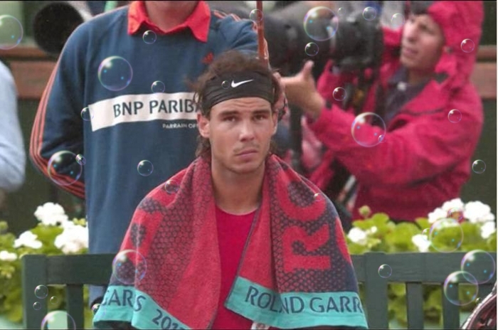 PHOTOS: Photo of Rafa Nadal asking for new balls, Cincinnati Open, c2011 Valerie David. Screencaps of Roland Garros 2012 matches and other tennis tourneys, featuring Rafael Nadal, David Ferrer, Novak Djokovic, Roger Federer, and Gael Monfils; TennisTV, EuroSport, ESPN, Tennis Channel, NBC. Fair use.